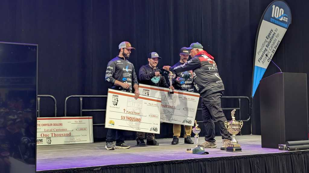I’ve been hearing about the Miramichi Striper Cup for years, as anglers from across Canada and even the U.S. travel to take part in this huge catch-and-release tournament. It was a real treat to get to check it out in person as well as meet and chat with so many anglers. I also had the opportunity to spend time at the Garmin booth and help hand out prizes, including a variety of fishfinders, provided by Garmin, a tournament sponsor (and one of my partners).